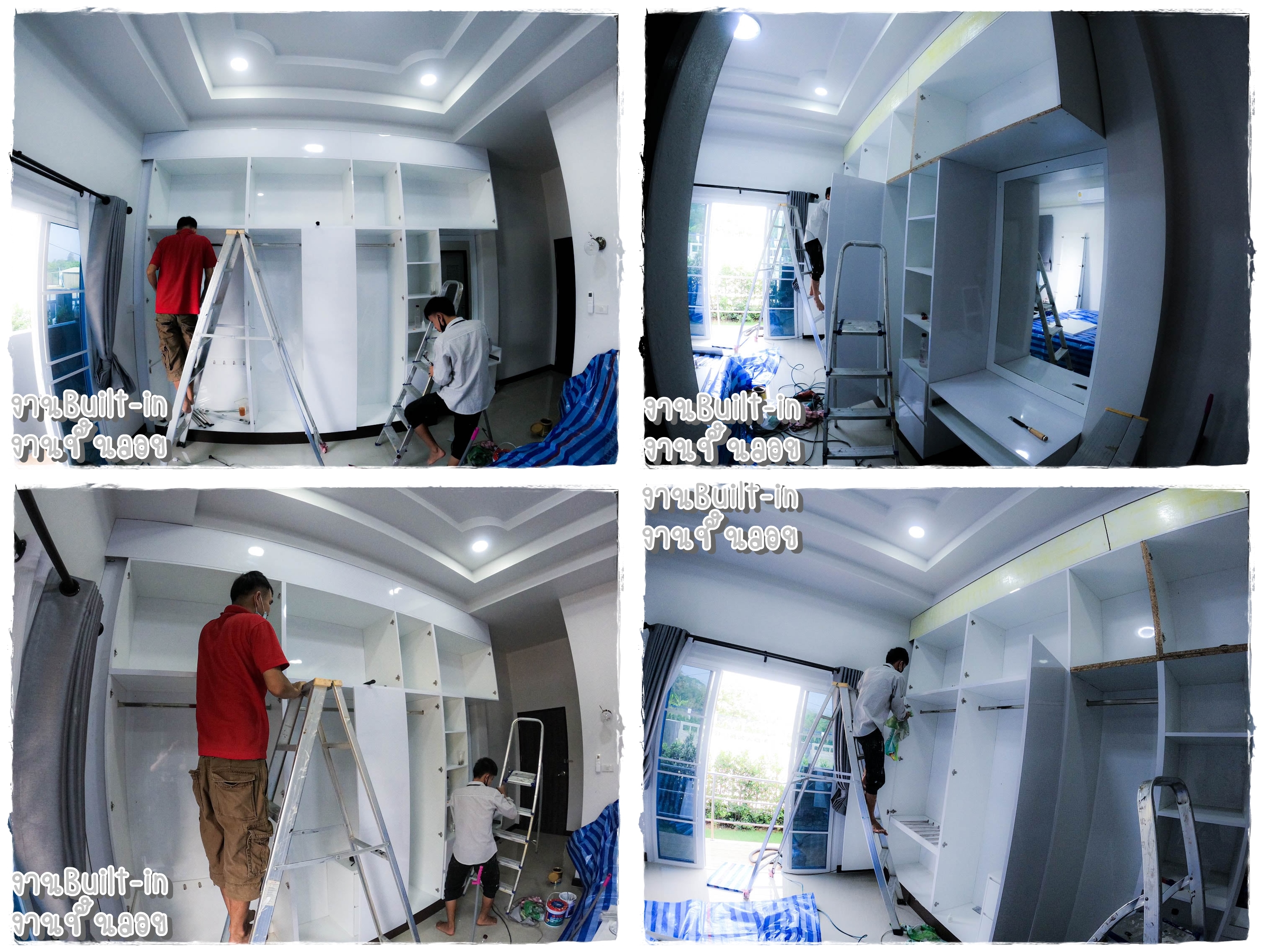 ตัวอย่างงานBuilt-in ไม้ยางพาราประสาน เคลือบด้วยเมลามีน/โฟเมก้า